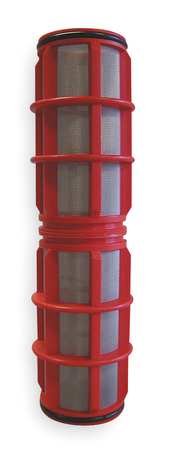 Filter Screen, Max Fluid Temp 140 F, Height 10 In, Dia 2 In, 130 Microns, Stainless Steel Screen, Color Red, Screen Area 52 Sq-In, Material of Construction Stainless Steel, 60 Max Flow GPM, Max Pressure 150 PSI